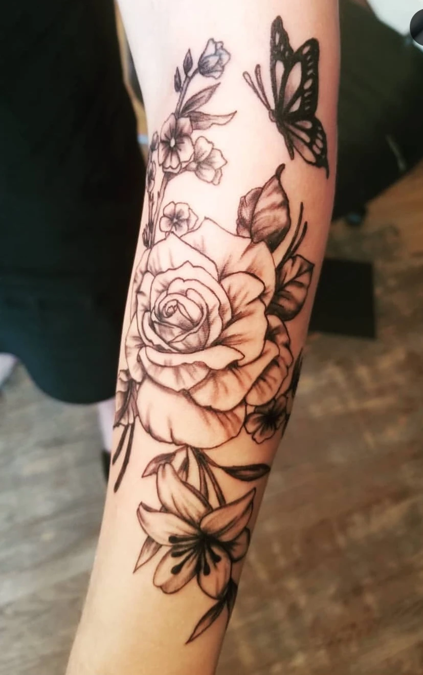 Tattoo Artist - Fineline, floral, anime/cartoon, watercolour, black and grey.